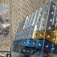 The anodized aluminum 1.5cm cubes come in Gold, Blue, Silver, and Gray.