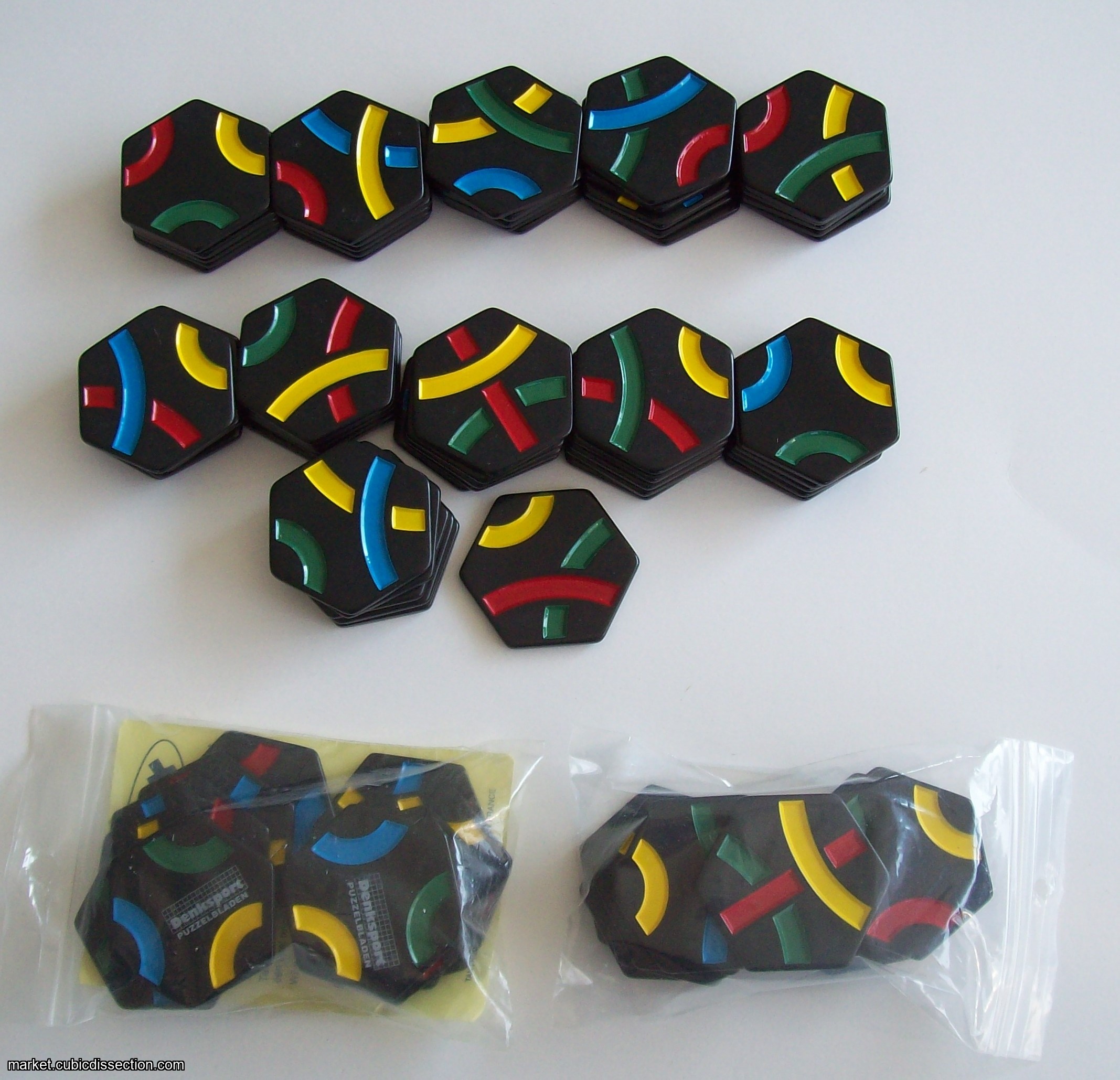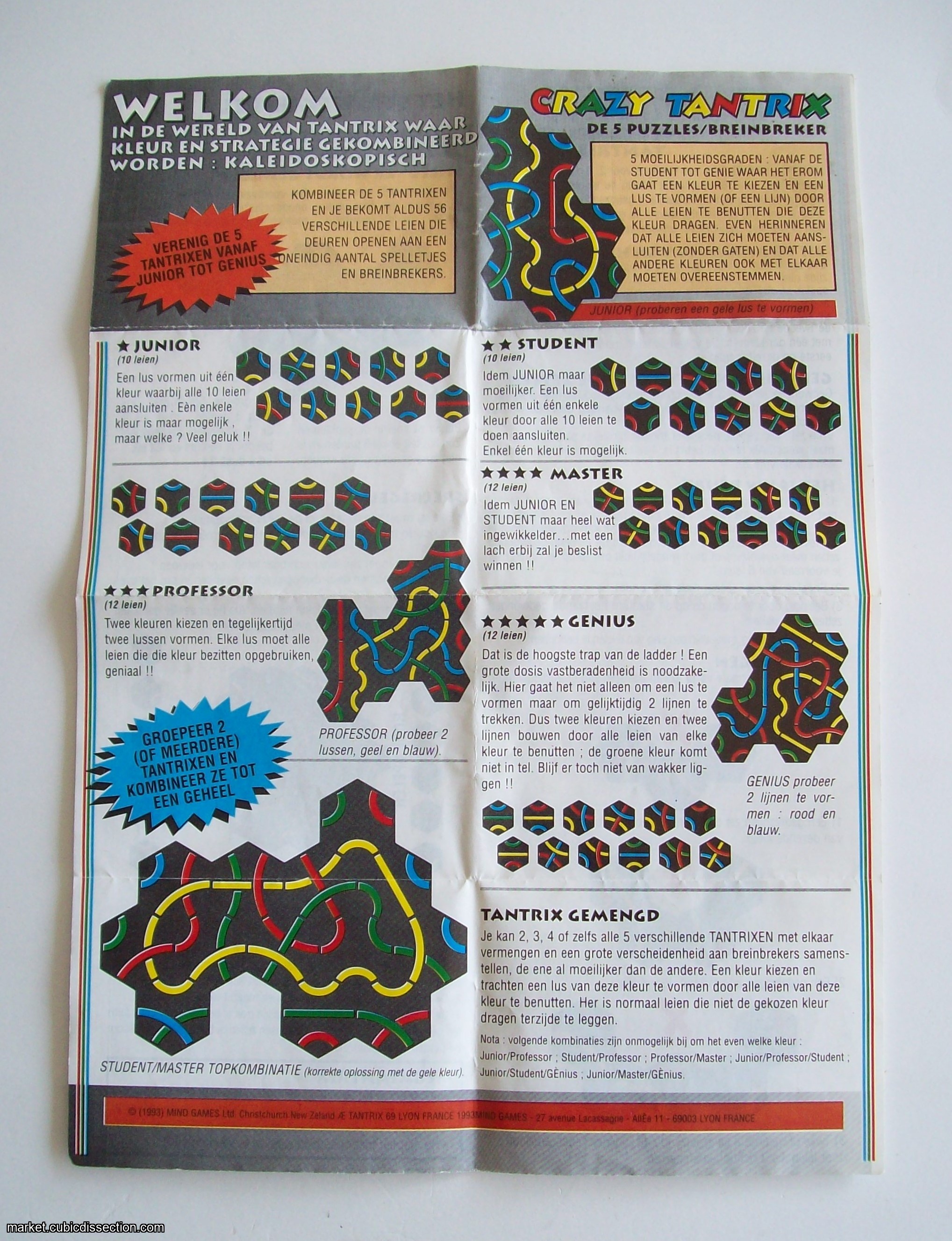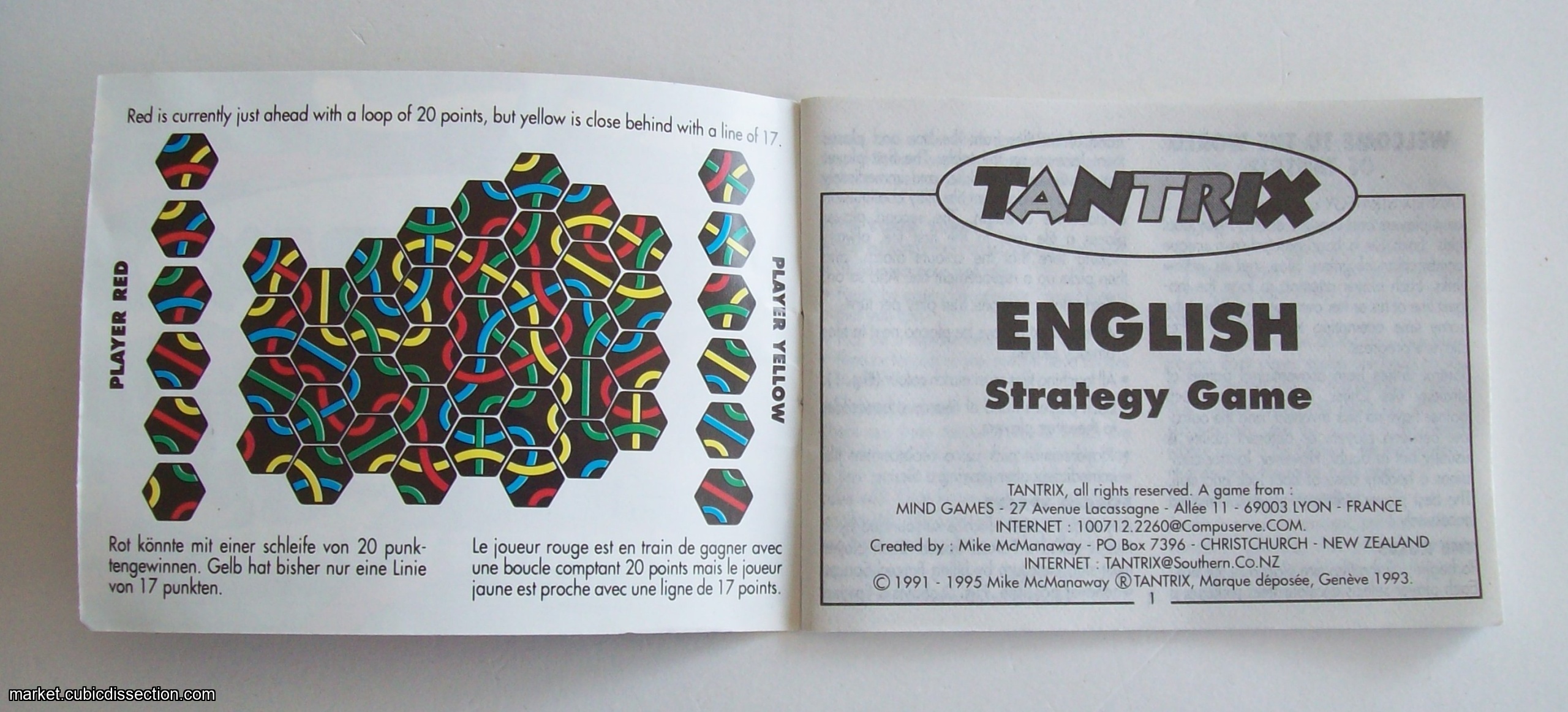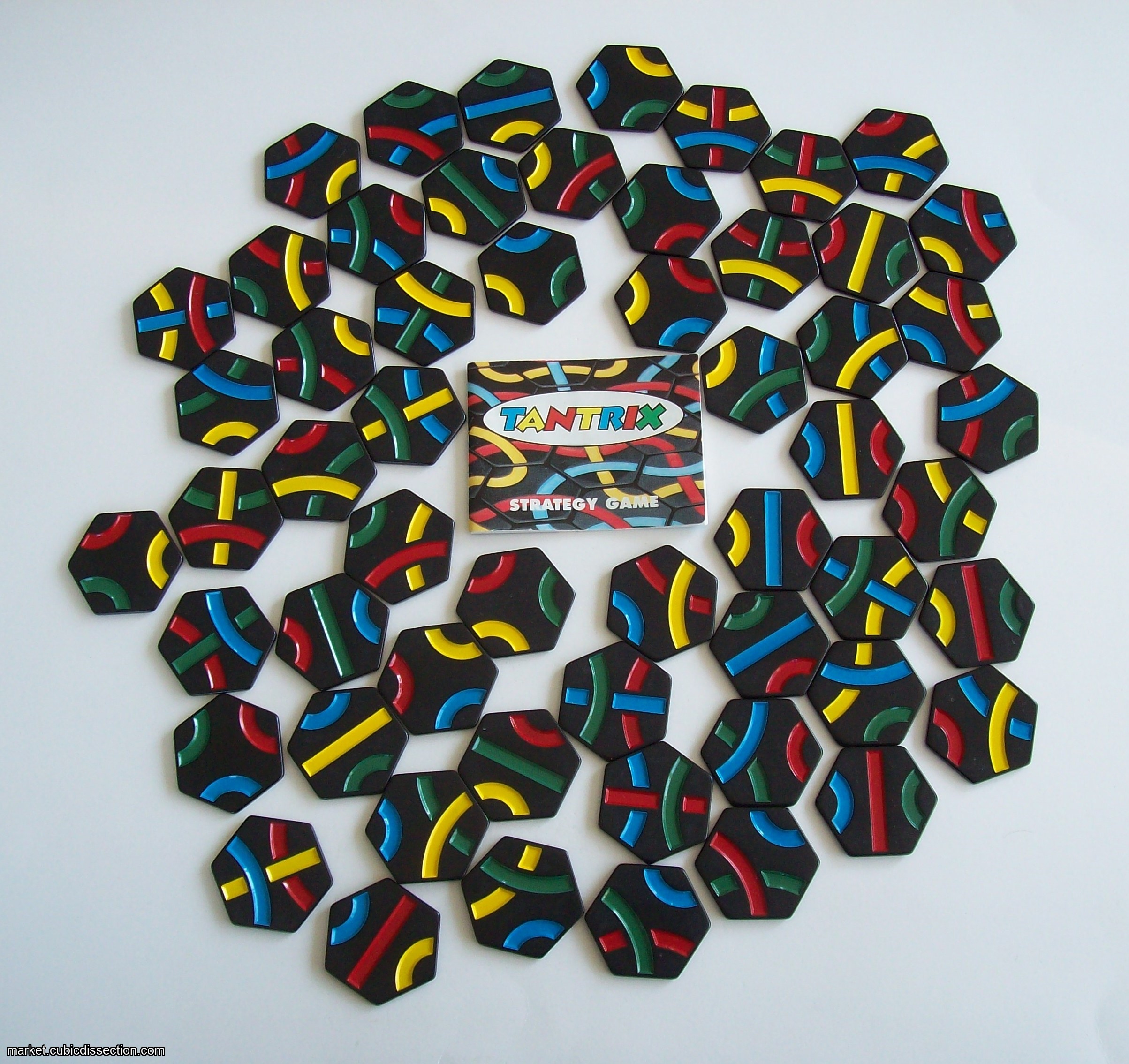 The Tantrix is the playing field formed by the tiles lying against each other. The name Tantrix is based on the English 'Tangled Tracks'.