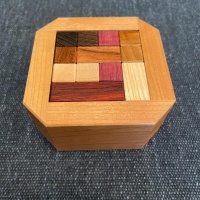 "Tenchi is a brilliant anti-gravity packing puzzle named after a Japanese word that translates to both "Sky" and "Land," the goal is to pack the pieces into the frame so that the puzzle can be lifted and rotated without any part falling out.