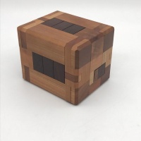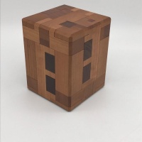 Constructed of choice walnut and carolina cherry, the tolerances on this puzzle are excellent. Operation is smooth and crisp with little or no slop at normal humidity. Even though I applied the lessons learned while making the Binary Burr, crafting this design took all my abilities, and I am very pleased with how it turned out. I do not anticipate making this design again anytime in the future, since it took me over a month!!