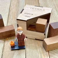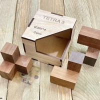 Tetra3 packing puzzle by Osho (Naoyuki Iwase). I purchased this puzzle second hand from Frederic Boucher’s personal collection. There are no major flaws although you can tell it’s been solved. These puzzles are rustic to begin with. Designed and created in batches then onto the next. And honestly, I have a hard time getting these puzzles in the US. I can’t say that I’ve ever actually owned a brand new one. I’ve always purchased them secondhand. They just sell out so fast. And I’m not even sure if they ship to the US. Either way, this puzzles is reminiscent of a Pelikan puzzle as usual. 3 pieces need fit inside the frame. Then the goal is to fill the entire exposed gap. Easy enough. There are rotations and sliding movements necessary. I received this puzzle without documentation. It will be shipped disassembled and in a ziplock bag. It has been stored in an airtight container with Boveda humidity packets.
