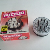 The Brain is a very interesting puzzle, using the Gray Code concept (after Frank Gray) or reflected binary code, which is a binary numeral system. It's produced by the American company Mag-Nif and dates back from 1973.