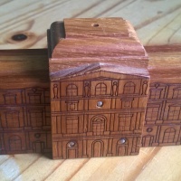 Designed and made by Brian Young, this puzzle is no longer produced.  View his original listing at https://www.mrpuzzle.com.au/the-louvre-sequential-discovery-puzzle.html