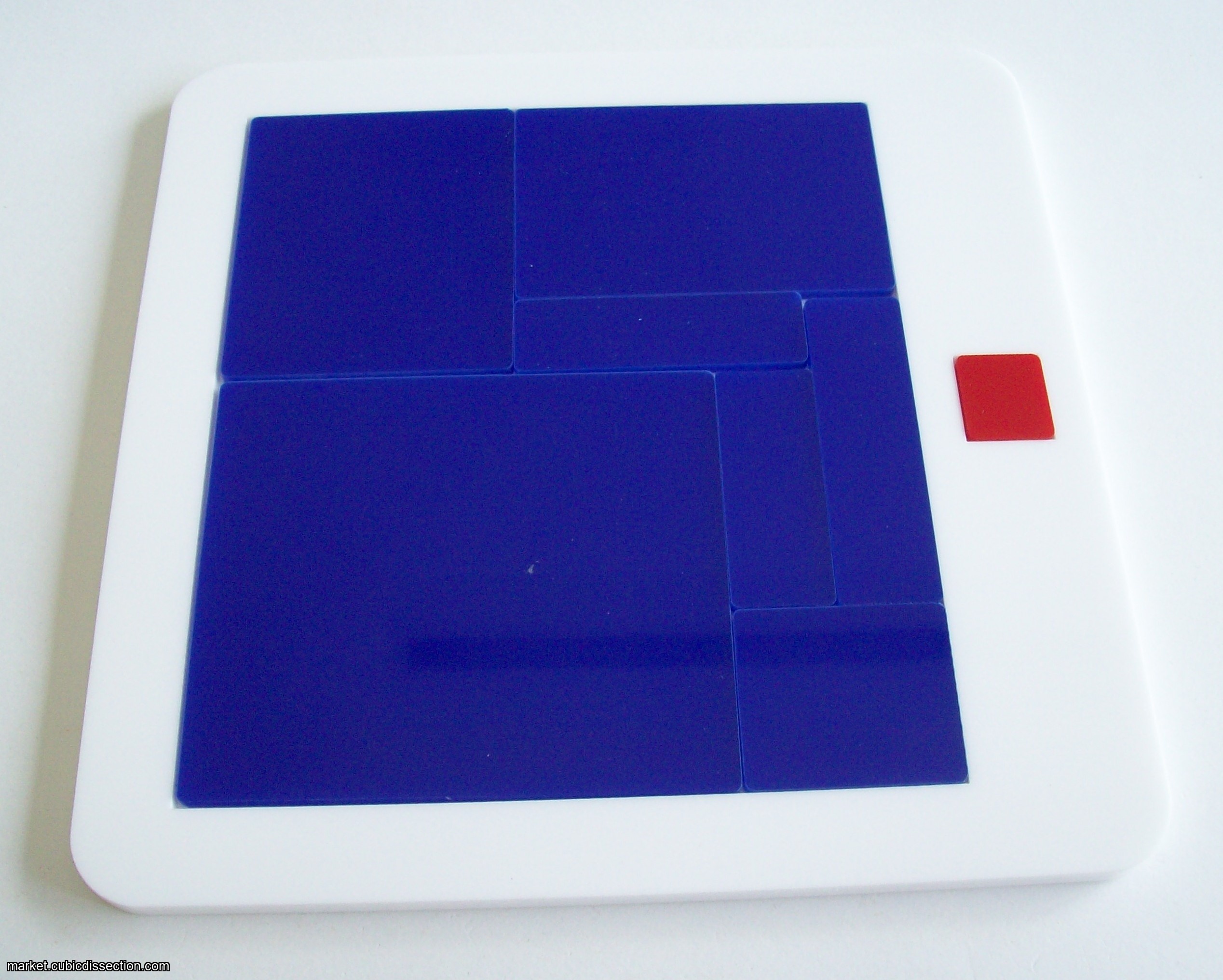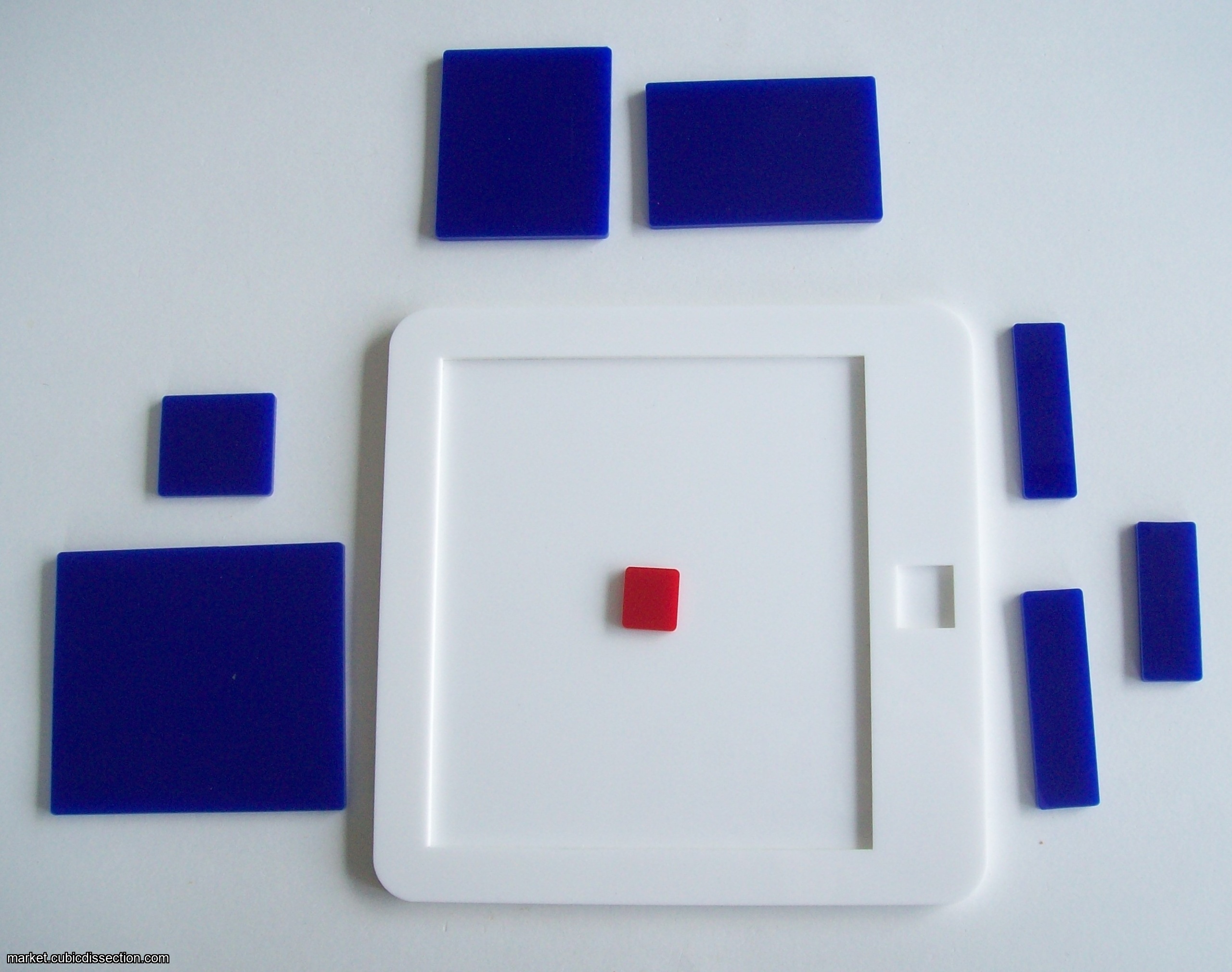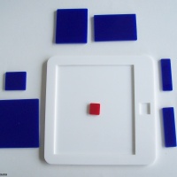 Objective: Remove the seven blue pieces from the tray. Add the single red piece, and fit ALL eight pieces in the tray.