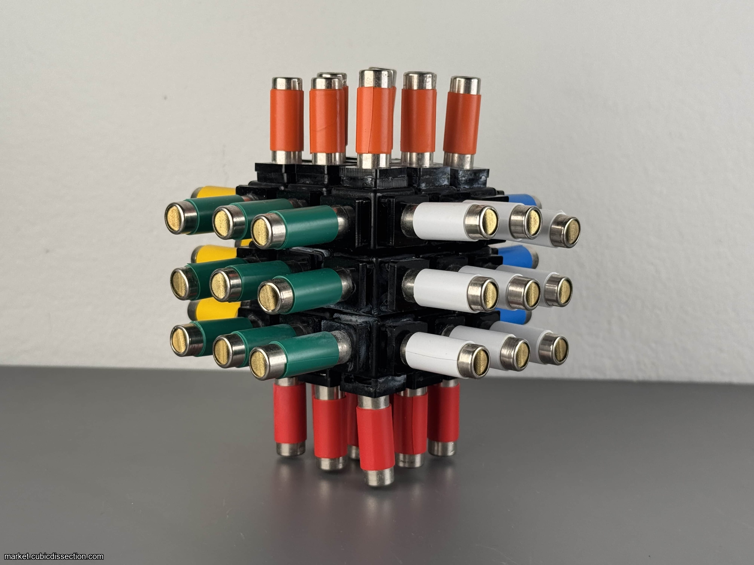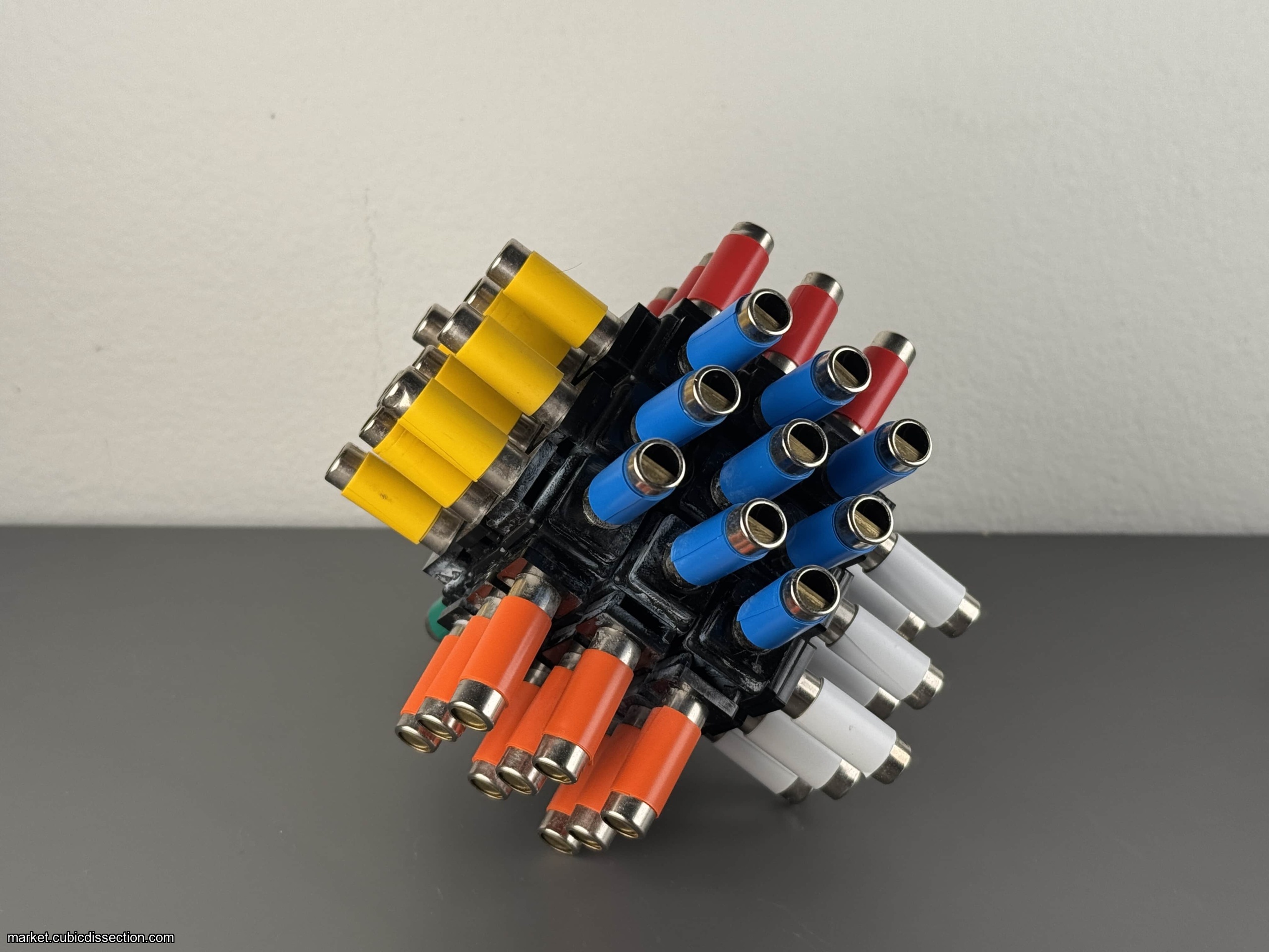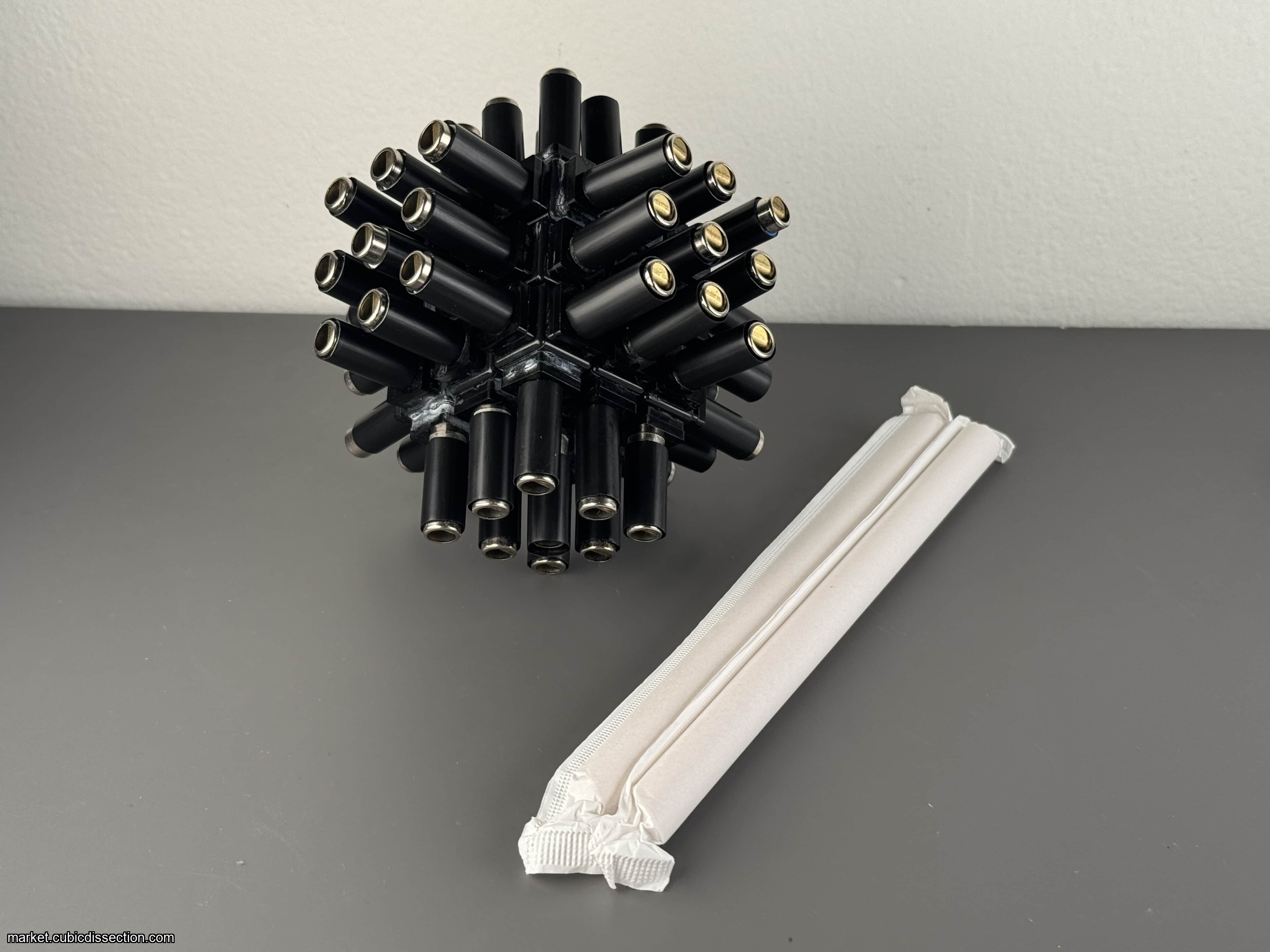 This was my IPP puzzle competition entry in 2022. I only made 2 of these, and I'm keeping one. So this will be the only one out there. It's a Rubik's Cube that has pitch pipes attached instead of stickers. These pitch pipes have different notes. It can be solved by sound instead of color. It can also be solved using the colors, but there are black plastic tubes that can be used to cover the colors. A few bubble tea boba straws are included so your friends' germs don't get all over it! I thought this was a fun conceptual idea at the time. Not practical of course! The pipes occasionally will fall off, but a little super glue will get them back on.