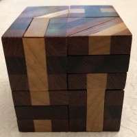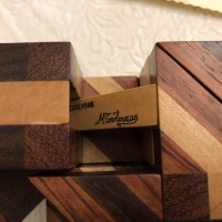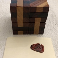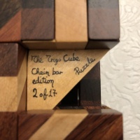 This puzzle uses  eight pieces, serially  interlocking assembly to create a beautiful cube. Great finish in Like new condition. Complete with Puzzle certificate - wax seal is not even broken. Stunning piece.