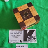 A one-of-a-kind art masterpiece and complex puzzle cube, this Kcube Designs puzzle makes a stunning display piece that will amaze and confound. Kim Klobucher makes a small assortment of puzzles in extremely limited runs, and each puzzle is uniquely crafted to maximize aesthetic appeal with beautifully finished hardwoods from around the globe. Kim has produced fewer than 150 total puzzles for sale over the past 10 years, but his attention to detail and hours of workshop time show. The puzzle designs are not trivial either; Kim's designs have appeared in the IPP International Design Competition no less than 5 times!