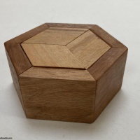 Three- piece "Third Degree" puzzle by Bill Cutler, also known as the 3-piece Blockhead. This puzzle is from the collection of Dr. Benjamin Muckenhoupt, one of the first solvers of the Cutler Cube, who received many prototypes from Cutler. The finish is not as smooth and the fit is not as perfect as the version made of cherry and walnut by Walt Hoppe, and the wood seems to be different from the Bits & Pieces version.