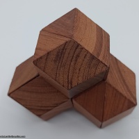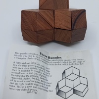 Three Bunnies : Stewart Coffin design #118. Three dissimilar pieces go together in co-ordinate motion. Jerry Slocum used the Stewart Coffin copy of this puzzle as his exchange at IPP-18, this is the Bits and Pieces copy. Definitely functional and it is a fun, simple little puzzle to solve. Comes in original box with documentation