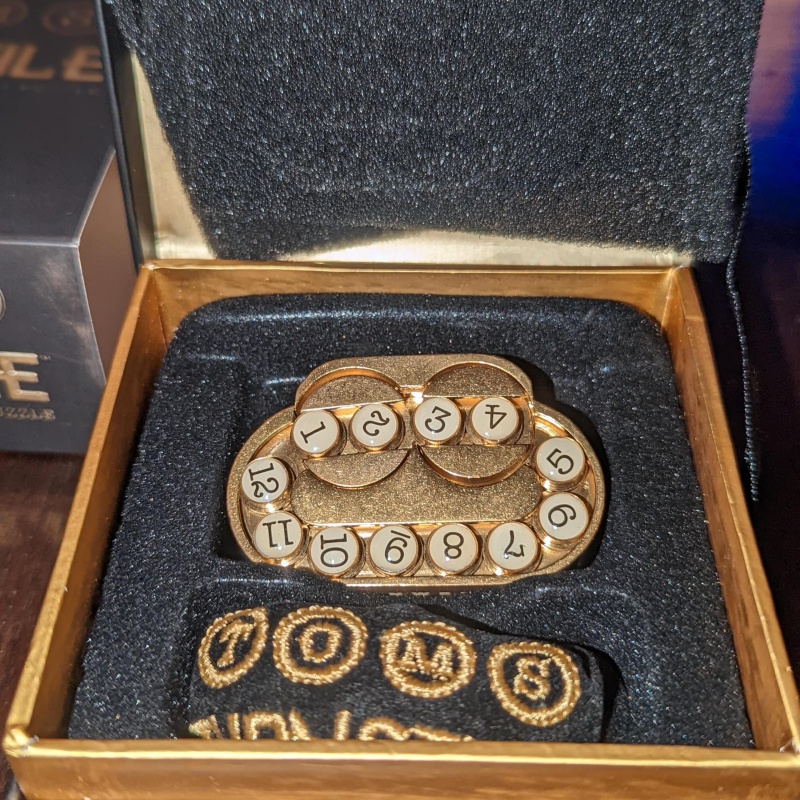 Arrange the twelve numbers in order by rotating them around the dial and using the turnstiles to swivel the digits into place. Forged out of solid brass, Tom's Turnstile is a stand out in any puzzle collection—well-made, timeless and extremely challenging. The Turnstile also makes a great makes a great introduction to the world of mechanical puzzles for anyone interested in numbers."