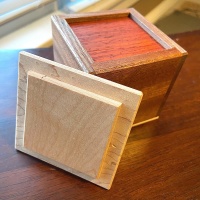 This batch of Topless was constructed from a plank of very nice striped Sapele which shows a lot of shimmer via chatoyance in the grain structure. A slight modification to this release should result in more dimensional stability by the use of the same Birdseye Maple on the inside and outside of the lid panels.
