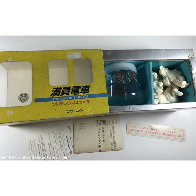 Toyo Glass Packed in Tokyo - Fit the plastic figurines into the subway car - Comes with original box and packaging (shows signs of wear). One of the most famous and interesting Toyo glass designs!