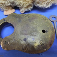 This is one of a series of locks I am selling. Mostly (all?) Indian manufacture and best described as "rustic". All are in working condition,  none are particularly tricky. Condition is variable on most of these. Oil, Grease, Rust all present in varying degrees on these locks.  If you have ever bought locks from India (as I did) you should know the kind of thing you are getting. A puzzle you have to wash your hands, or your Standardised Puzzle Hamster's fur after using,.