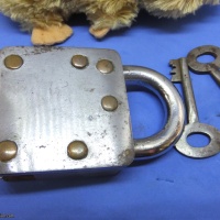 This is one of a series of locks I am selling. Mostly (all?) Indian manufacture and best described as "rustic". All are in working condition, none are particularly tricky. Condition is variable on most of these. Oil, Grease, Rust all present in varying degrees on these locks. If you have ever bought locks from India (as I did) you should know the kind of thing you are getting. A puzzle you have to wash your hands, or your Standardised Puzzle Hamster's fur after using,.