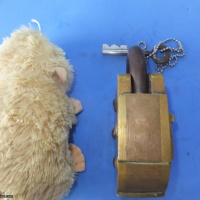 This lock and key weigh about 11 SPH (710g) Key cover is stuck in top position does not affect solve. Otherwise a very nice, heavy(!) brass trick lock.