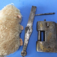 This lock and keys weigh about 10.5 SPH (672g)  This is perhaps one of the nicer examples of this type with two keys.
