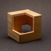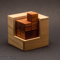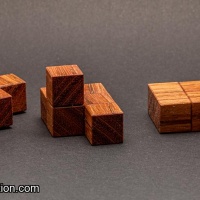 The puzzle is designed by Osanori Yamamoto and is made out of exotic wood.
