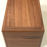 | COMMENTS: | Although it looks relatively modest on the outside, this is a phenomenally difficult puzzle box to open. It is by far the most difficult box I have produced for the public. The initial design was so difficult I ended up somewhat crippling the full mechanism by removing another locking facet (7 copies of the original design are available; look for the Ultimate Triple Lock Box). Beginning with simple sliding panel moves, the solvers task is to find the key and use it to disengage the concealed locks which prevent it from opening further. Although the metal parts of the mechanism are never revealed, this box would not have been possible without my recent metalwork experience. Once again, the simple appearance of this box belies the amount of work poured into its craftsmanship and construction. It is a very, very difficult puzzle. You have been warned :) |