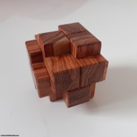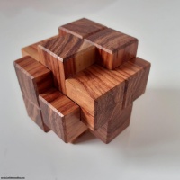 Very good construction, fitting is excellent, wonderful Tulipwood used. About construction, precision is here, 5 pieces are inforced by a dowel (see photo). A pure collector puzzle wonderfully made by Maurice Vigouroux.