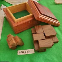 Anyone familiar with fine woodworking and mechanical puzzles recognizes the master craftsman Trevor Wood. This puzzle is over 30 years old, and is in excellent condition. A very difficult puzzle to find, don't miss this opportunity to purchase from the Garcia Family Collection.