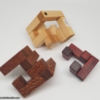 TriTIC is a tricky 3 piece turning interlocking cube.  It requires 14 moves total and 5 rotations.  Wood wonders did make several copies of this design. However, this copy was made by me.  The puzzle is brand new and has no discernible defects.  I won't however claim that my wood working skills are on par with the professionals.  But this copy has an excellent fit.  The photos are of the exact copy to be sold.  Solution can be provided.