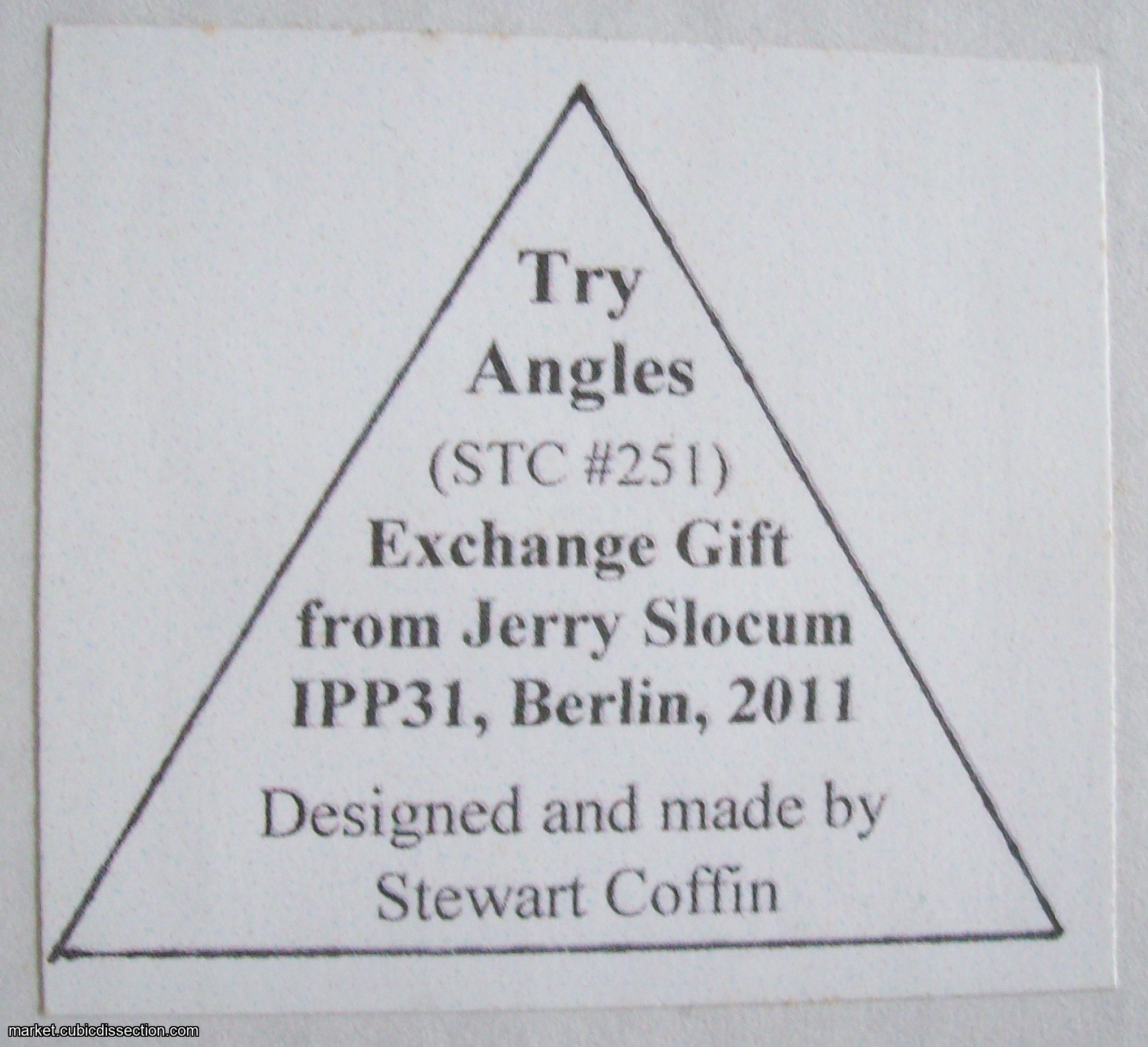 This puzzle is a exchange puzzle by Jerry Slocum for the International Puzzle Party 31 held in Berlin, Germany 2011