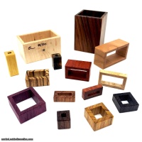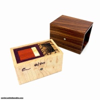 Morado Outer Box, Birds Eye Maple Drawer. Paduak, Purpleheart, Cherry, Bocote, Canarywood, Wenge, Ash, Zebrawood, Bubinga, Granidillo, Yellowheart and Jatoba pieces