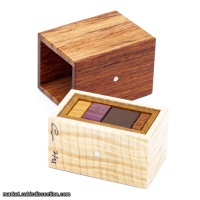 Tube It In's construction is painstaking. Each piece is strengthened with shouldered edge joinery, then beveled on all faces - a tricky task with such small components. This release offers an outer box in either Bubinga or Shedua, with Maple, Zebrawood, Padauk, Canarywood, Honduran Mahogany, Cherry, Purpleheart, Marblewood, Wenge, Peruvian Walnut, Limba, White Oak and Leopardwood internal pieces.
