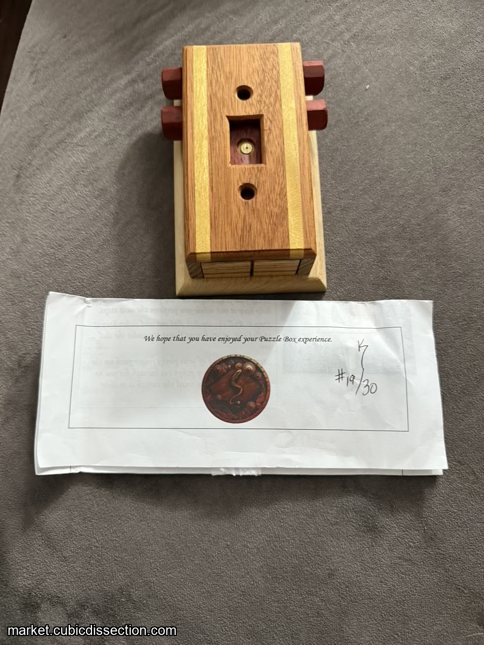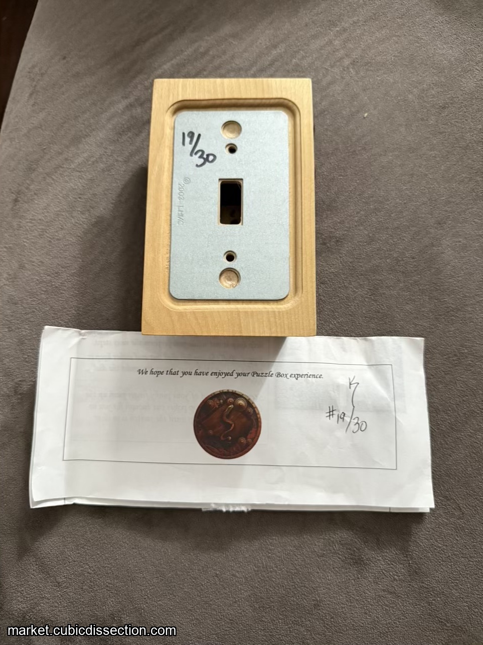 Kel Snake makes some of the coolest puzzle boxes in the world. This is Kel’s light switch puzzle called Turn Me On. 5 moves to open and can be installed as an actual light switch on the wall (I wouldn’t recommend it in case you have guests over and someone needs to turn on the light when it’s dark and they are unable to solve it) but it’s got a great look and will guarantee to be a fun talking piece