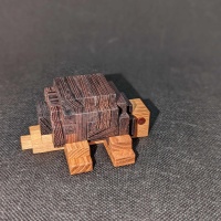 “This one is very cute. Jakub decided that he wanted to turn his hand to puzzle design himself and created something delightful. Turtles reminds me of the Bison puzzle from Xmas 2021 – it is a sequentially interlocking puzzle created from Wenge and Acacia. The secret is to find the way to remove the first piece and then it will serially disassemble. In the end you are left with a bunch of rather interesting pieces and a genuine laugh out loud moment when you suddenly realise what the guys have done. When I showed Mrs S, even she was delighted with the end result. It is not a difficult puzzle but it is genuinely delightful.”