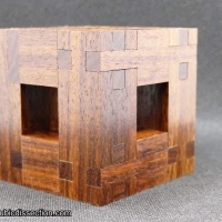 "Twelve Straight / Twisted is an incredibly difficult and satisfying interlocking puzzle. There are a staggering 10,800 possible solutions, but only four are capable of being assembled due to the tricky joinery. Pieces are milled from solid stock with great precision. 25 copies in Granadillo were made for this release."
