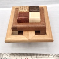 If you know my puzzles you know: I like the non traditional shapes and mazes. The Ultra is both of them a little. It has some frame like a mazes, and some regular stricks. At first sight looks like a grouping puzzle (my other favourite puzzle type), what can't totally disassebmly. But you can beleive me: it can disassembly totally some well-directed moves. When I planned I experimented with this type a lot. I made some variation, I've an 'Infra' puzzle too. Nowadays I often keep in my mind the robust of pieces, thinking about a producer and puzzler to avoid the possibiliy of broken elements. When I planned this puzzle I left in the drawer for a long time before I published it. I was surprised when Jakub requested a permission to produce it. Of course I liked it, the honor is mine! When I saw the prototype I said: Wow! I like it! It was a very pleasant feeling when I first saw my puzzle plan in the real wood representation! Even so it is from fantastic type of woods. The workmanship is professional as usual, buy it, and happy puzzling with it!
