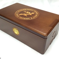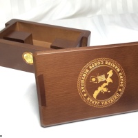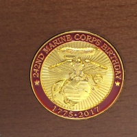 This unique puzzle box was a commemorative gift to the 242nd division of the United States Marine Corps. It's nicely decorated with gold inlay on the top and a metal inlayed emblem on the front. The puzzle box comes with a solution sheet included inside the box.