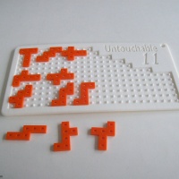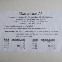 Put the 11 unfoldings of a cube within a specified rectangular board so that no two patterns touch each other even at a corner.
