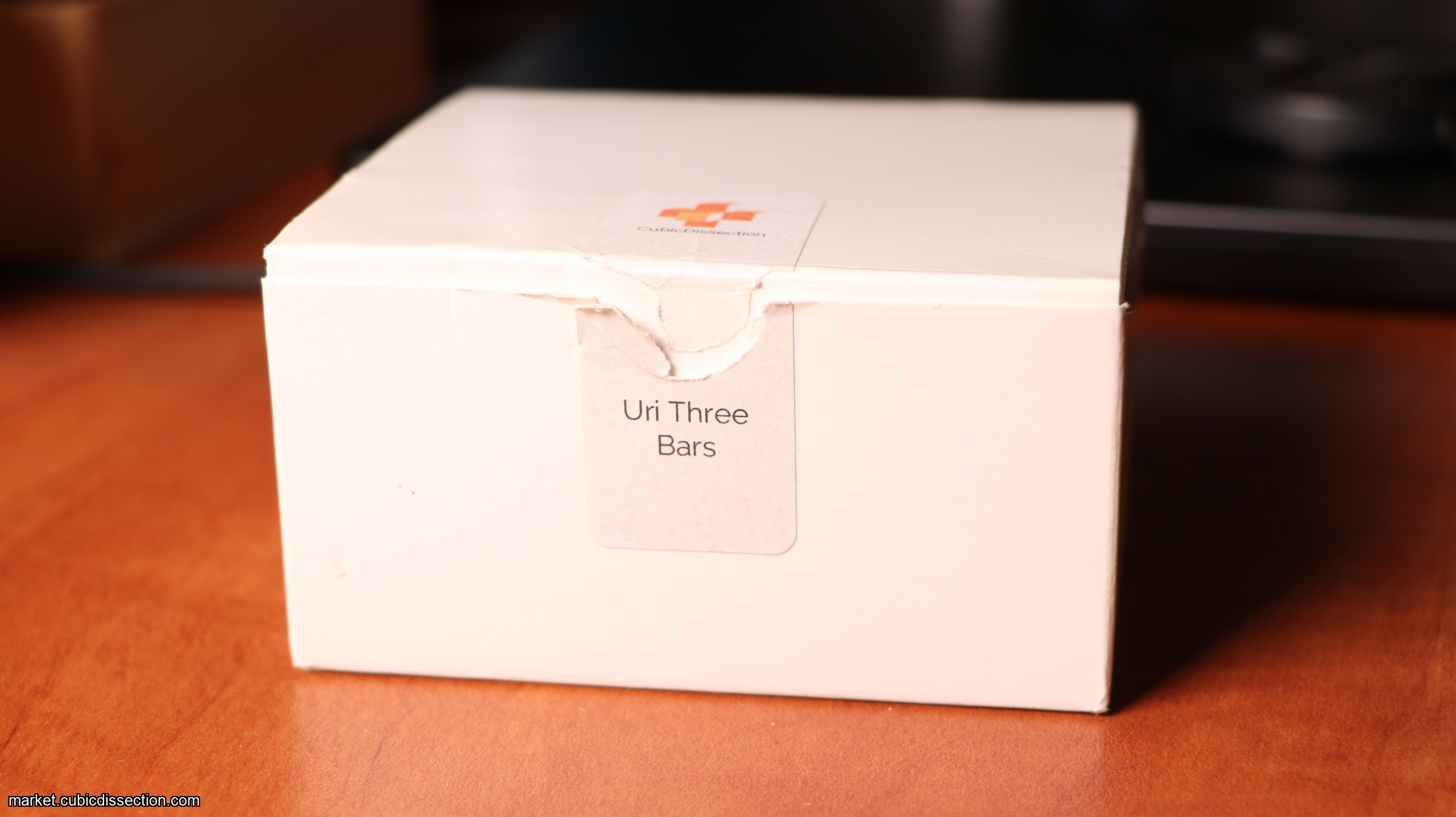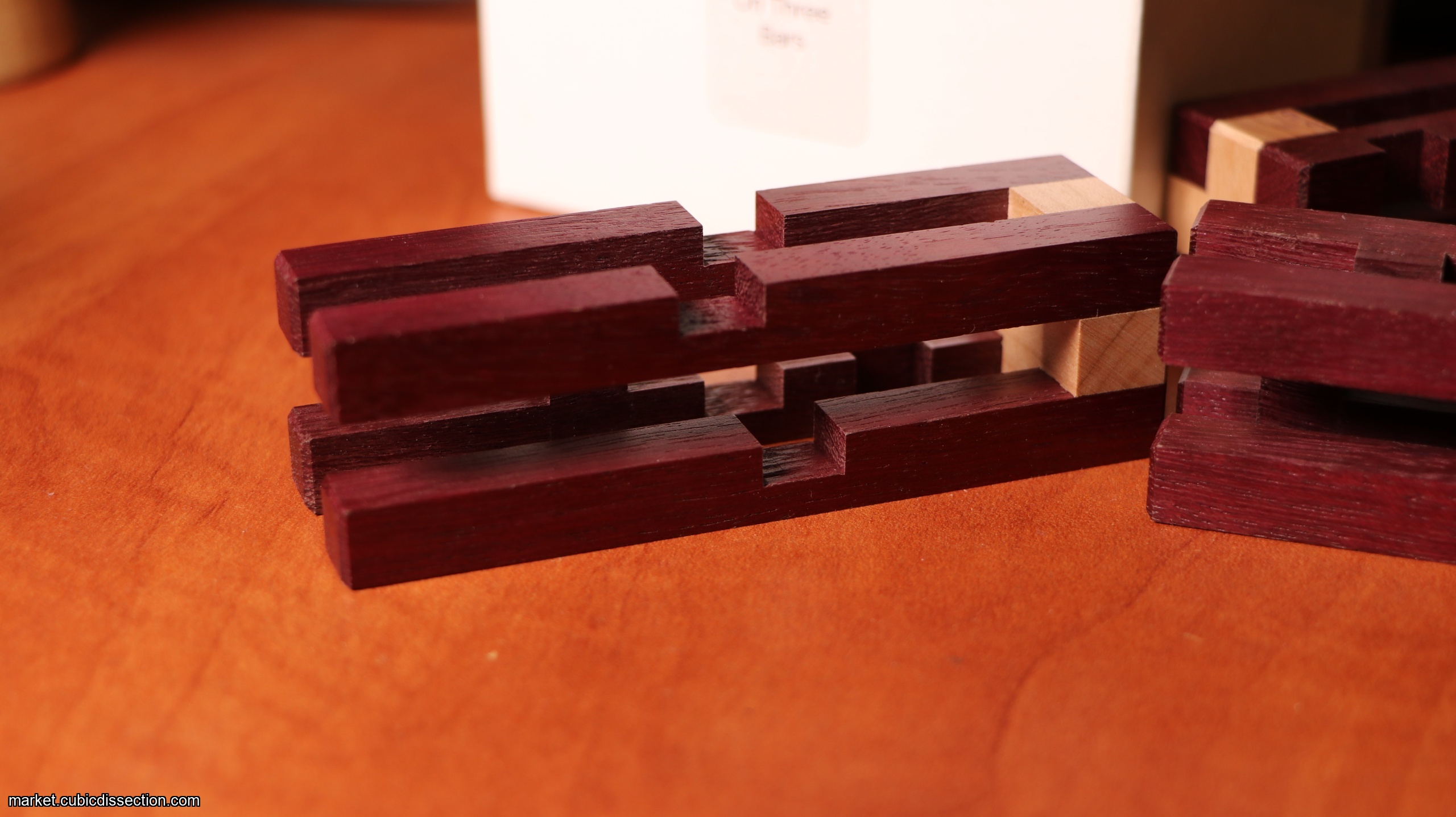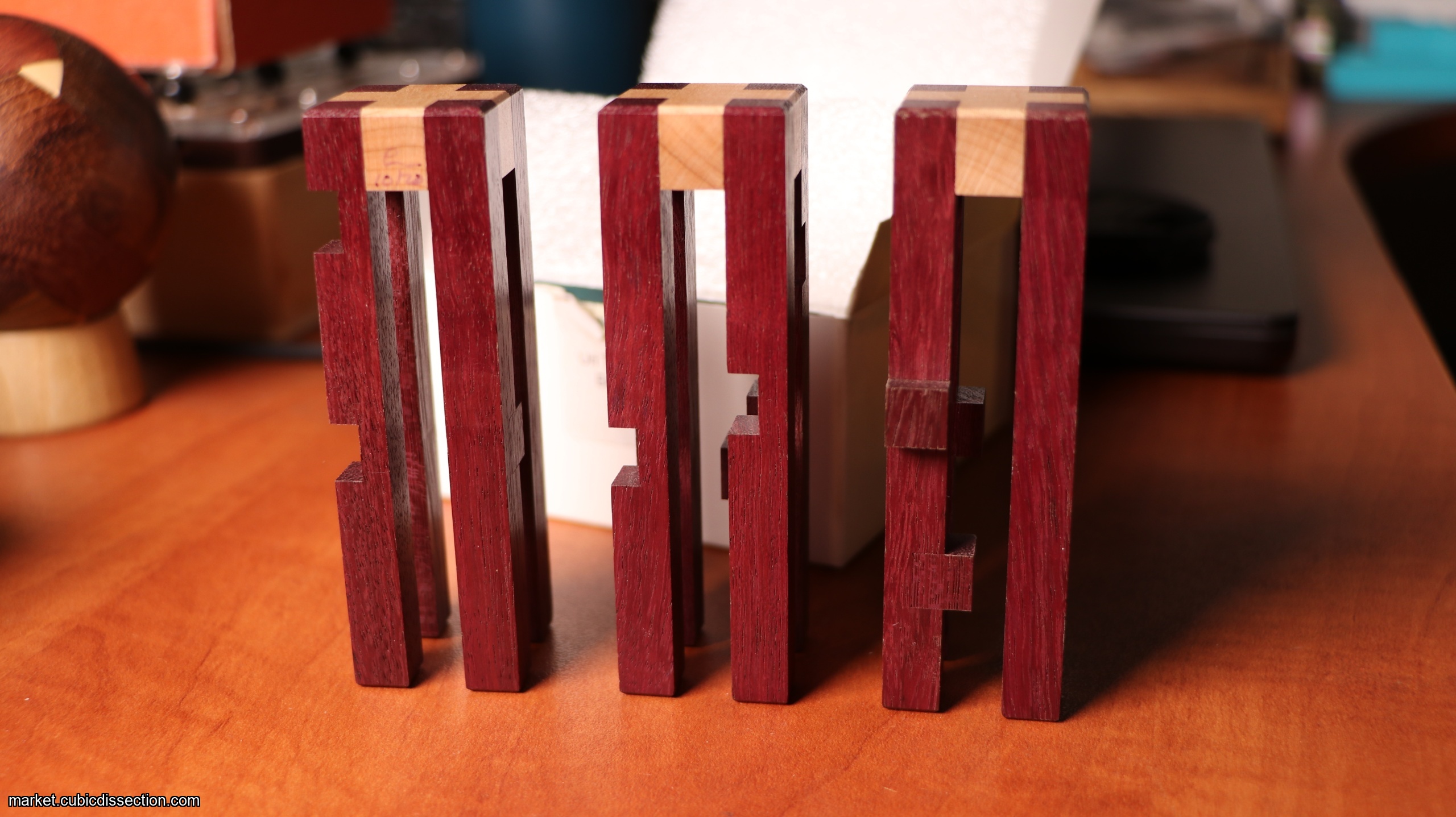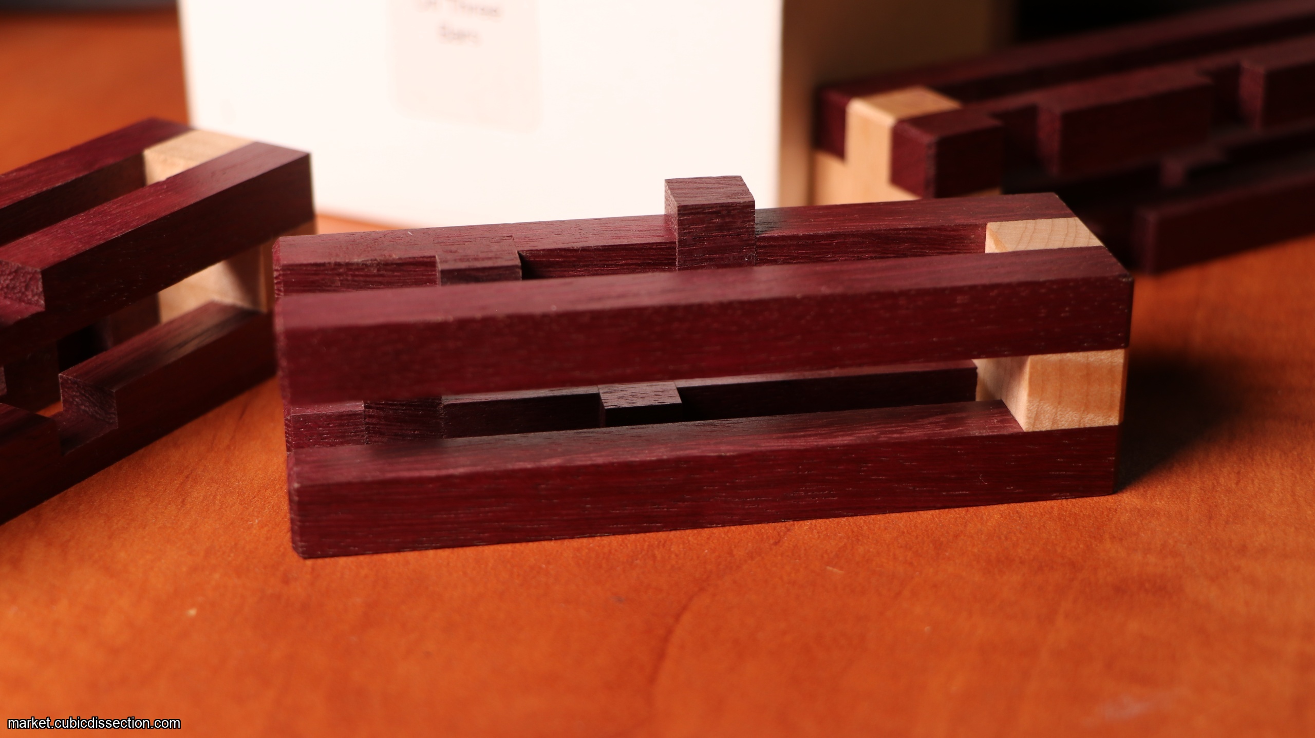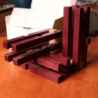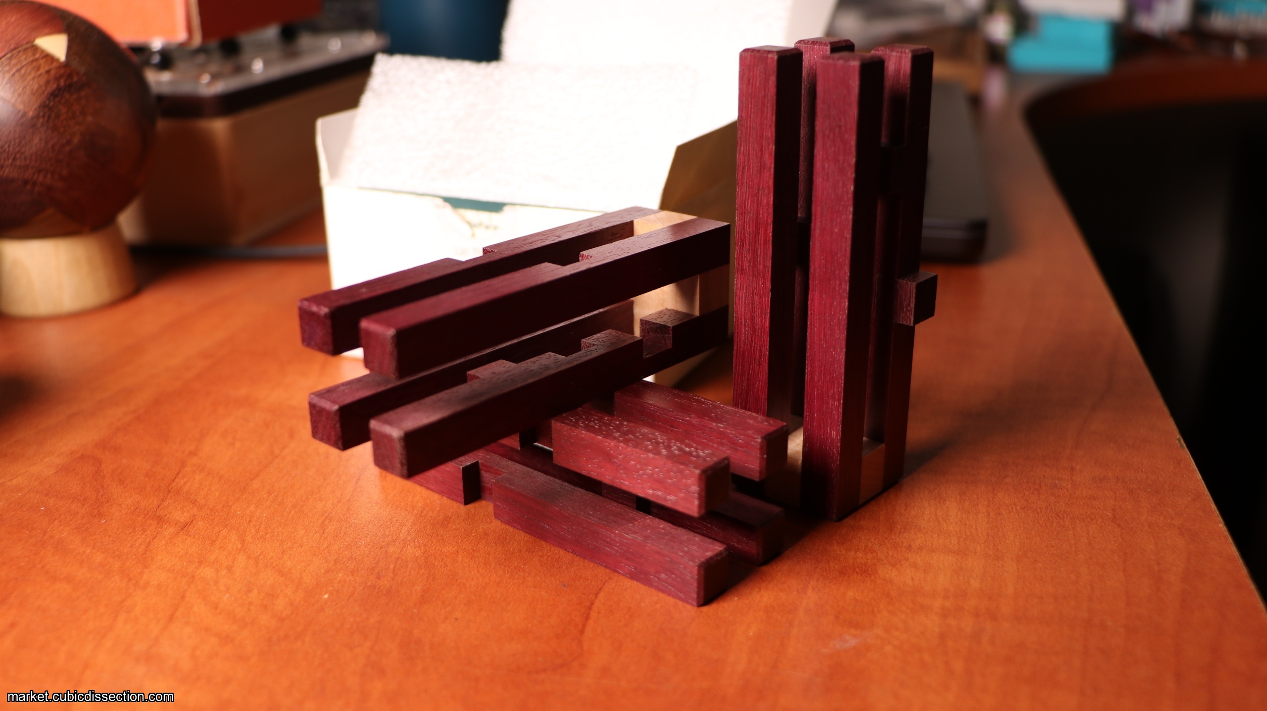 Cubic Dissection made Dario Uri's Three Bars puzzle. Made of Purpleheart. 60 copies released in 2020.