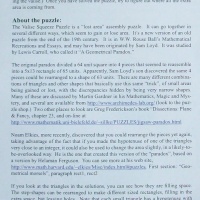 This puzzle is a exchange puzzle by Stan Isaacs for the International Puzzle Party 25 held in Helsinki, Finland 2005