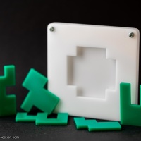 This puzzle is quite tricky and the goal ist obviously to pack all the pieces inside the frame.