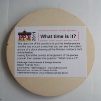 Having found the correct arrangement of the pieces, you can then answer the question “what time is it?”.