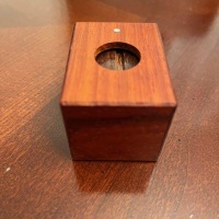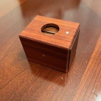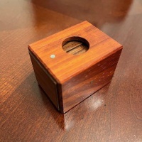 "Small Box One - Window Box is a devious drawer tucked into a box with lots going on for its size. The large hole in the box serves as a window into the mechanism...careful observation and experimenting is necessary to reveal its secrets. I'm very happy with how this box turned out, the mechanism works flawlessly and repeatably once you know the scoop.