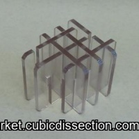 The puzzle design consists of 6 square plates that assemble into the shown form with cubic outer shape.