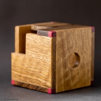 The puzzle has a beautiful box out of black limba and wonderful purpleheart pieces.